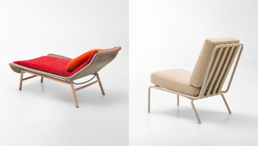 Ainda no mundo da decoração de interiores, a Chaise Longue “Lazy Chair”, de Monica Förster Studio, também consegue ampliar a atuação da marca. Nela, uma estrutura de madeira esguia e uma superfície feita à mão com cordas características acolhem uma almofada macia e sutilmente irônica, concebida a partir da ideia de um tapete.