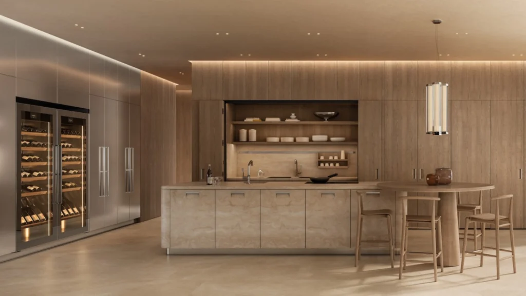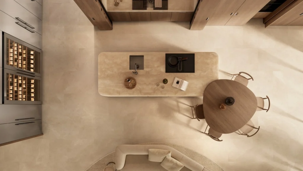 Com isso, Kora rompe com as linhas retas tradicionais das cozinhas gourmet, trazendo cantos arredondados e um design mais fluido e orgânico.