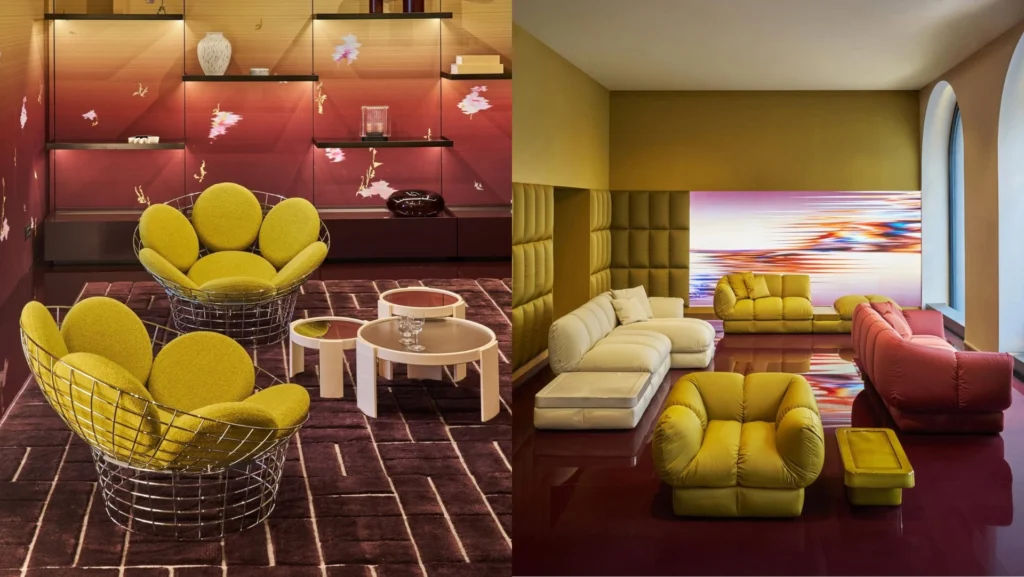 Ao longo da exposição feita para a MDW26, o mobiliário indoor e outdoor da marca italiana é apresentado em uma narrativa unificada, moldada por pesquisa e experimentação contínuas. Com os materiais e cores exclusivos do estúdio, cada elemento ganha significado, especialmente em relação ao espaço ao seu redor.