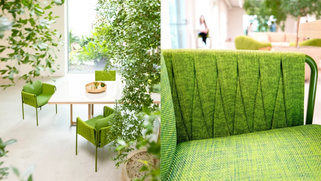 Entre as novidades de Paola Lenti está a cadeira Plissé. Assinada por Bertrand Lejoly, a peça tem trama tecida à mão e estrutura essencial, disponível em acabamentos foscos ou brilhantes, que pode ser combinada com as centenas de tons da biblioteca de cores da marca.