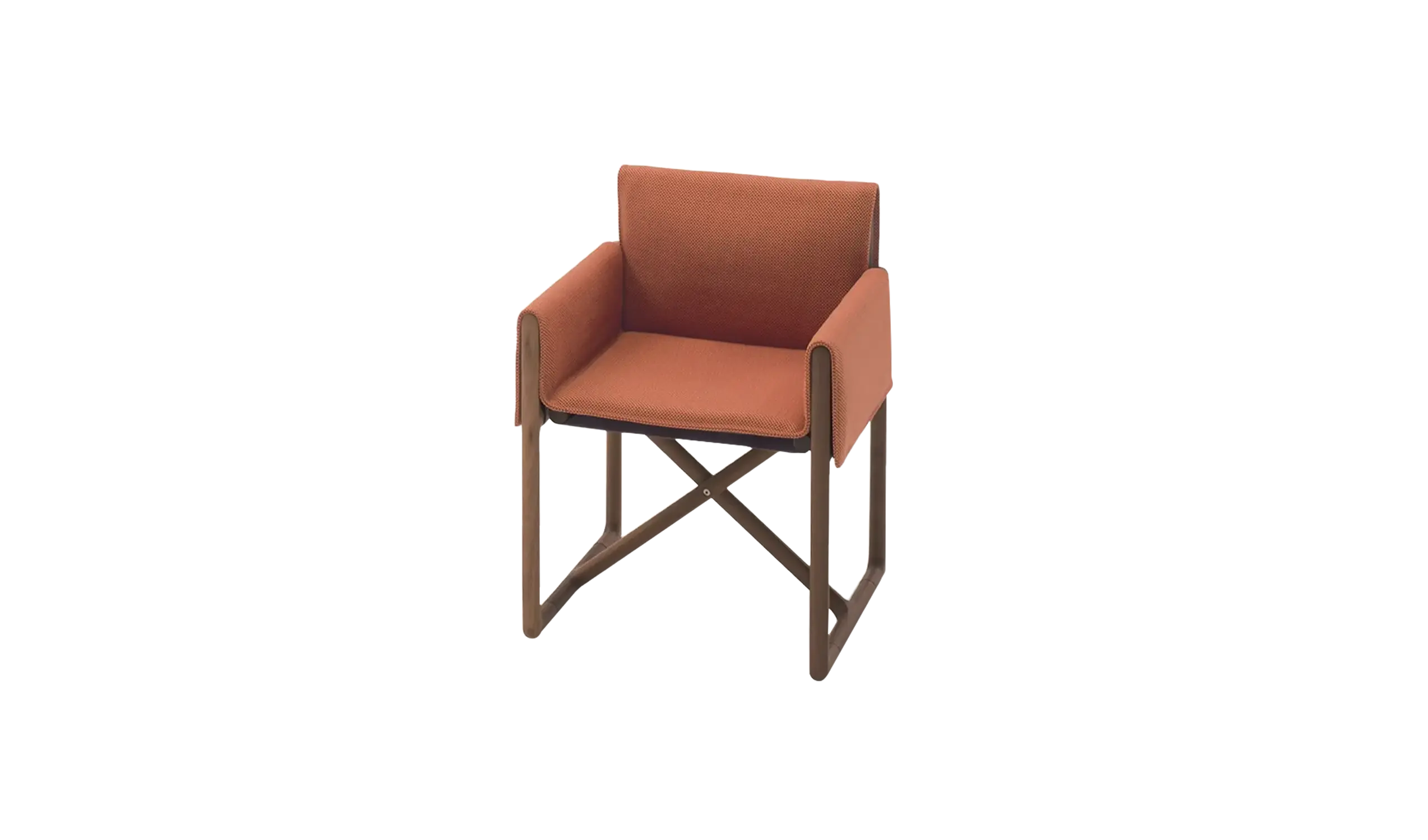 Assento dobrável com braços, a cadeira Portofino está disponível com almofada para assento e costas, aumentando o conforto. Feita de madeira de alfarrobeira; capa disponível em todos os tecidos de exterior da coleção. Recomenda-se a utilização de uma capa de proteção Winter Set.