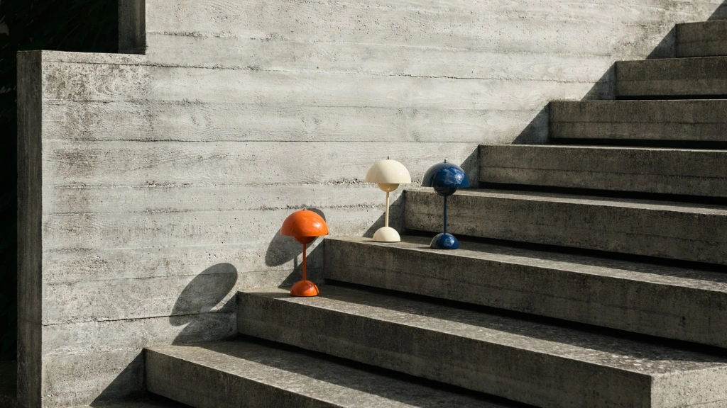 Outro destaque está na linha Flowerpot, comercializada pela &Tradition. Ela tornou-se símbolo do desejo de Panton em criar objetos que inspirassem alegria, sem deixar a funcionalidade de lado. Além disso, está disponível numa vasta gama de tons vibrantes e em diferentes aplicações, como no formato pendente, candelabro, luminária de mesa e arandela, por exemplo.