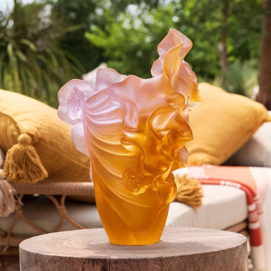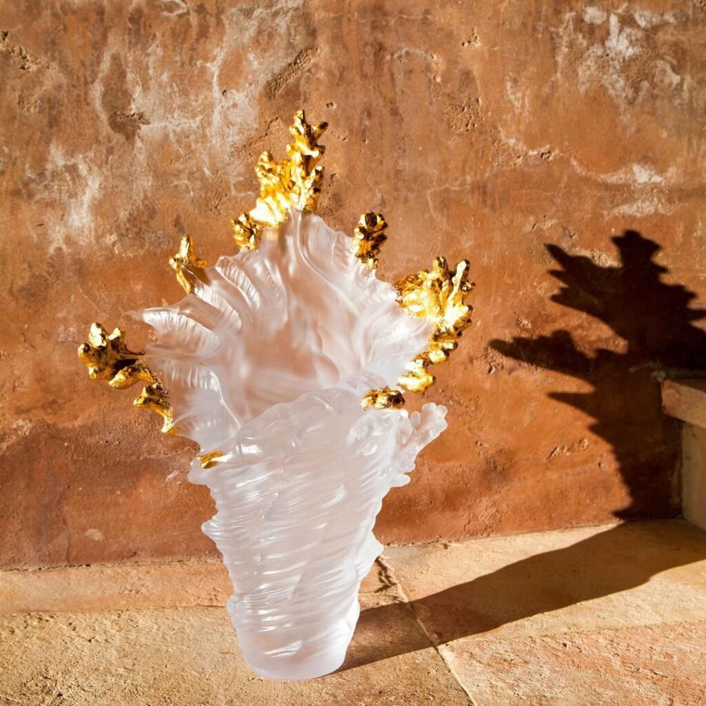 Ou seja, os itens alcançam uma dimensão escultural impressionante. Há nelas detalhes distintos, além de translucidez, brilho e coloração que contribuem para a singularidade. Atualmente, apenas a Maison Daum fabrica o cristal no mundo de forma excepcional. No fim, a marca oferece obras extraordinárias de arte em cristal e garantem acessórios perfeitamente construídos.